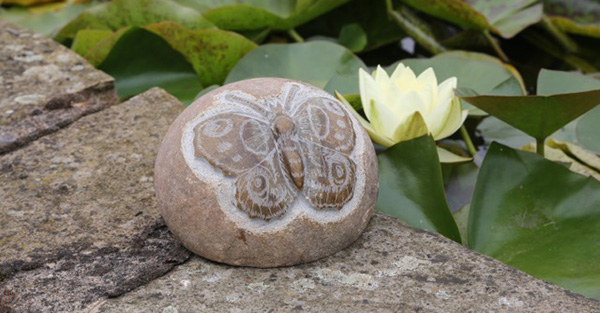 - Decorative stone with embossed butterfly image