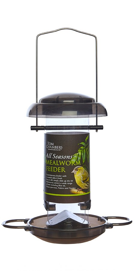Code: CS099 Qty: 6 All Seasons Mealworm Feeder Contemporary styled feeder with smoked effect finish and wider base Pull down perches allow birds to feed easily Trade orders or enquiries Call: 01405 766856 Email: sales@tomchambers.co.uk