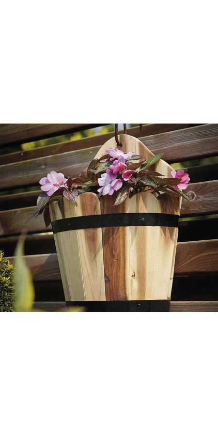 - A traditional wooden wall basket to add colour and detail to a wall or fence