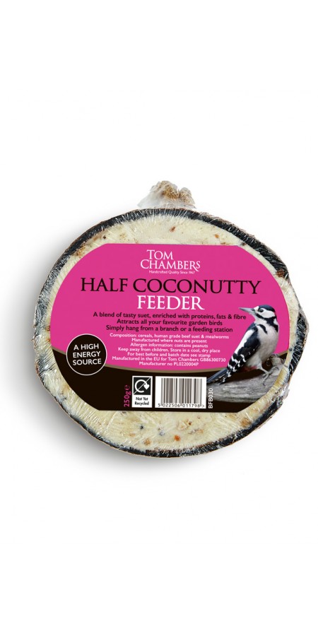 Code: BFB030 Qty: 24 Half Coconutty Feeder Filled with a nutritious mix of suet and seeds Hang from a branch or bracket Trade orders or enquiries Call: 01405 766856 Email: sales@tomchambers.co.uk