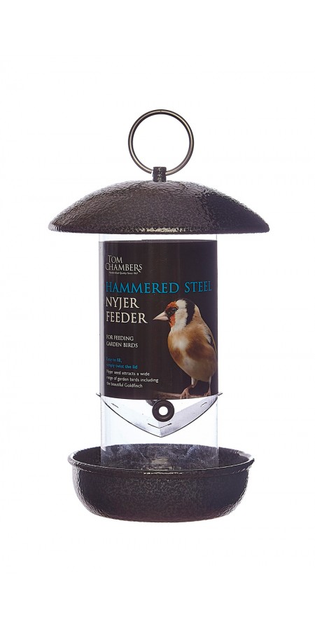 Code: CS050 Qty: 4 Hammered Steel Nyjer Seed Feeder Attractive hammered finish coating Lid twists off for easy filling Strong perspex tube Base removes for easy cleaning Trade orders or enquiries Call: 01405 766856 Email: sales@tomchambers.co.uk