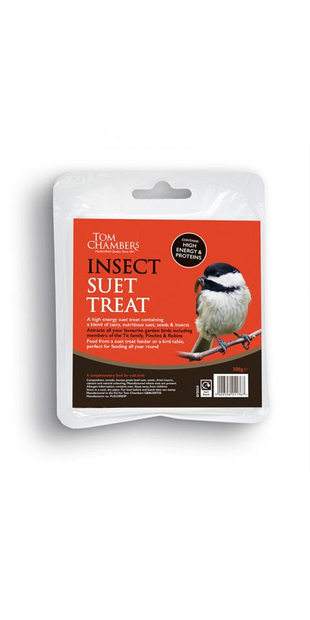 Code: BFB028 Qty: 12 Insect Suet treat A mix of tasty and nutritious suet blended with suet Great for feeding during winter Trade orders or enquiries Call: 01405 766856 Email: sales@tomchambers.co.uk