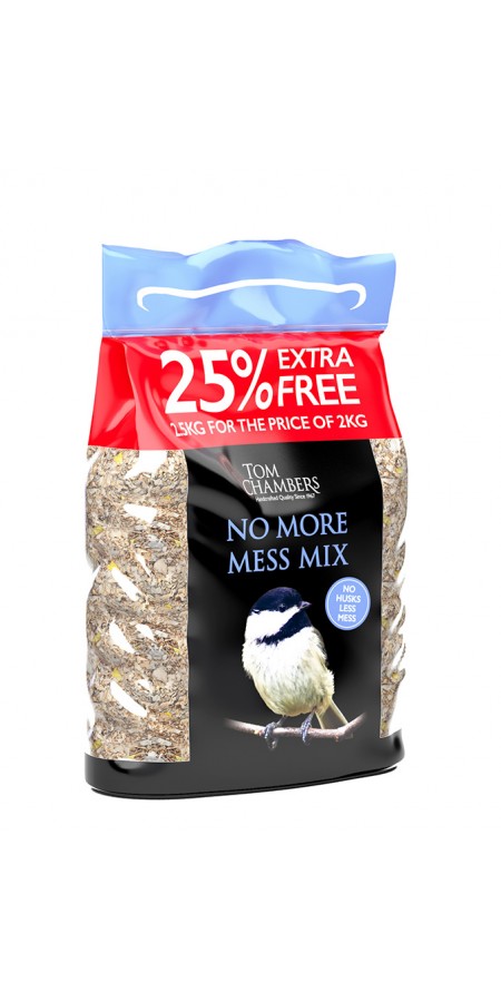 Code: BFC007 Qty: 24 No More Mess Mix 3.13kg for the price of 2.5kg Packed with the very best ingredients For use in seed feeders, on ground feeders or on bird tables 3.13kg Trade orders or enquiries Call: 01405 766856 Email: sales@tomchambers.co.uk