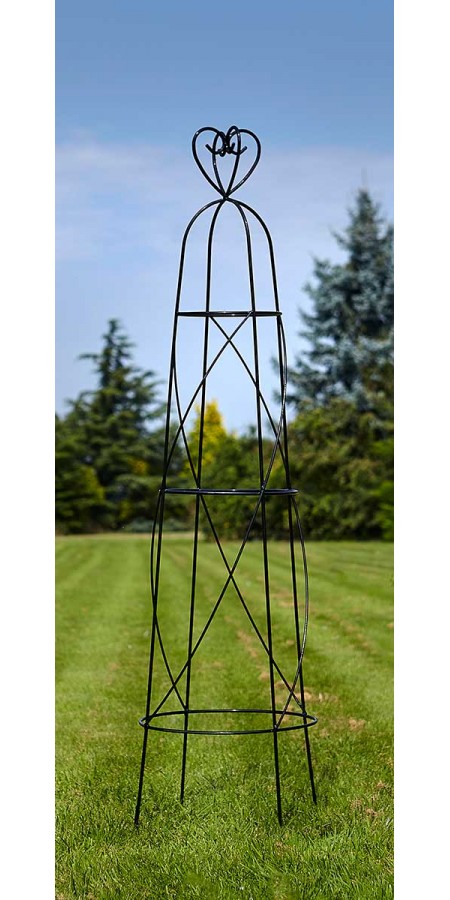 - A stunning plant obelisk with a heart shaped finial and detailed wirework
